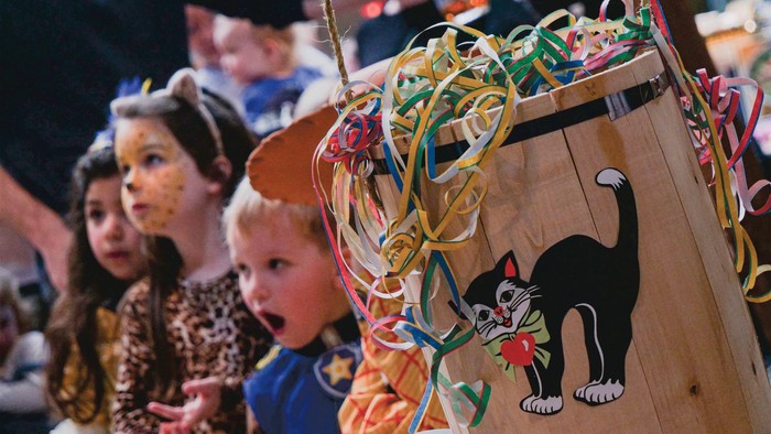 Tøndeslagning på kirkens p-plads med kåring af kattekonge og kattedronning. Kakao og boller til alle.